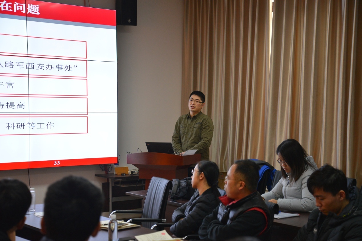 研究生辅导员、非全日制研究生联合支部书记张尚伟同志介绍了学院研究生支部总体情况。他谈到,在学院党委的高度重视和认真部署下,16个研究生支部均于12月初前完成换届选举,并在近一个多月的时间里结合支部实际,开展了支委会、主题党日、党员大会等多种形式的党组织活动。接着,各研究生支部书记分别依次发言,就支部2018年下半年开展的工作进行总结,并汇报了2019年上半年支部工作具体方案。