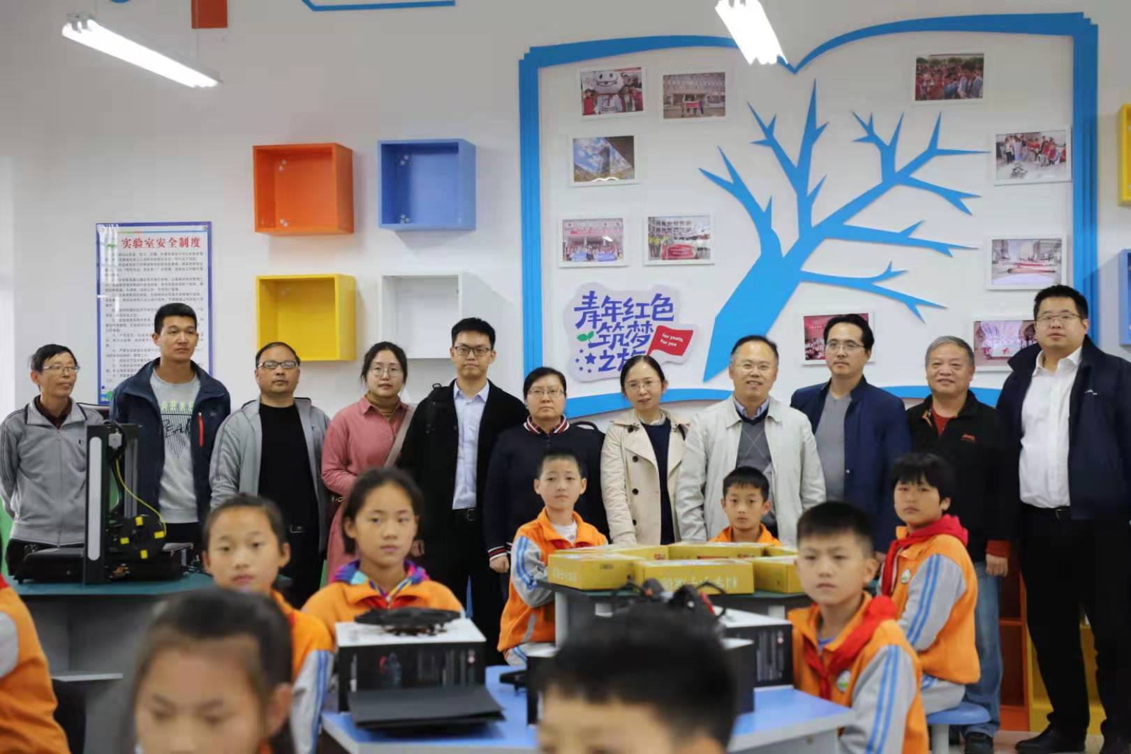 校工会扶贫办主任沈强介绍了青年红色筑梦之旅科创小屋的成立背景,并提出三点期望,一是维护好科创小屋硬件设施,二是利用好小屋先进科技优势,三是发挥好扶智扶志助推脱贫攻坚的支撑作用。“农掌门”科技团队负责人刘志镜教授鼓励小学生们在科创小屋里汲取养分、开拓眼界,并邀请同学们前往西电参观所负责团队实验室,了解计算机科学技术领域的科创成果。兴镇中心小学校长仇林茂在仪式上表示,感谢西电及计科院对小学的大力支持,一定管好用好科创小屋,鼓励同学们利用好宝贵的学习资源,成长成才,将来考上西电这样的好大学。