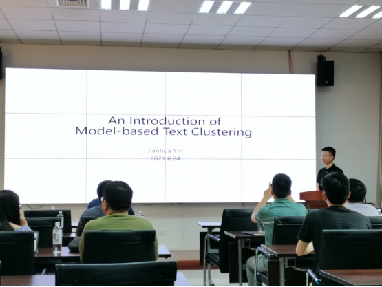 尹建华教授做了题为《An Introduction of Model-based Text Clustering(基于模型的文本聚类简介)》的报告。尹教授指出文本聚类是数据挖掘和机器学习领域的一个重要技术,被广泛应用于事件发现与追踪,文本总结,查询结果聚类等问题。在报告中,尹教授从自己的科研经历出发,一边介绍文本聚类领域的最新研究进展,一边跟现场师生分享自己的科研心路历程。报告最后,尹教授热情回答现场师生的问题。