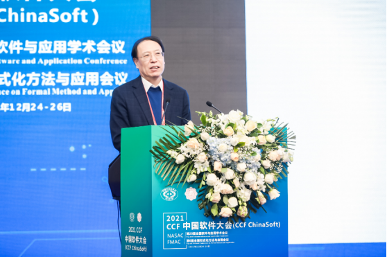 (通讯员 徐悦甡,李悦辰,崔笛)经过了12月24日与25日精彩纷呈的大会各论坛活动后,12月26日2021 CCF中国软件大会(CCFChinaSoft)在北京友谊宾馆线下开幕,并通过线上直播平台与B站全程直播。受原会议举办地陕西省西安市新冠疫情重大变故的影响,大会组委会对本届会议的举行方式进行了调整,3天的大会活动安排为,12月24-25日通过线上的方式进行各分论坛,12月26日在北京友谊宾馆设立线下会场,包括开/闭幕式、院士特邀报告、NASAC青年创新奖报告、第四届中国软件开源创新大赛颁奖等活动。9位中国科学院院士、中国工程院院士(林惠民、梅宏、吕建、廖湘科、杨孟飞、王怀民、冯登国、孙凝辉、钱德沛)与200余位代表线下参加了大会,其余代表与观众线上参会。26日在线直播平台全天在线人数超过7万人次。