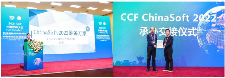 下一届CCF中国软件大会承办方代表,复旦大学计算机科学技术学院副院长彭鑫教授代表承办方进行承办方案宣讲,并与本届大会承办方kaiyun登录中国入口登录举行了承办交接仪式。