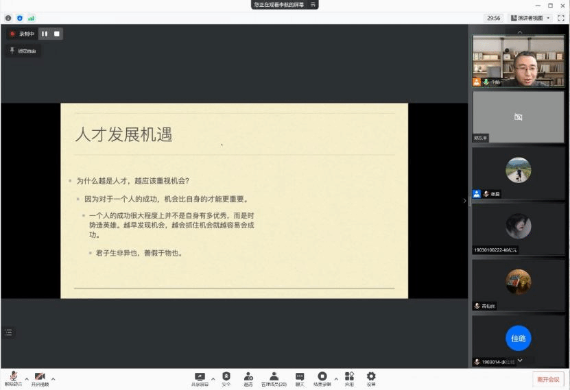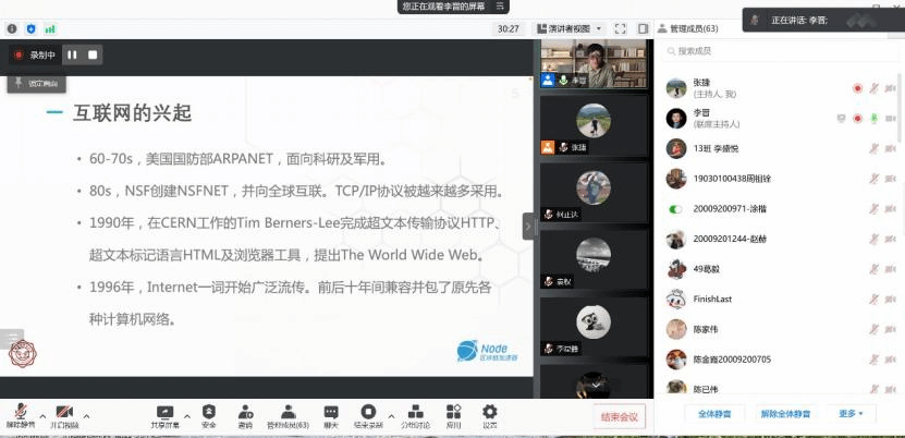 1月2日,李晋老师首先带来了题为《硅基文明时代的技术视角》的线上报告,活动由张捷老师主持。李晋老师结合个人学习、创业经历分享了深入独到的观点和思考,从互联网发展谈到新时代互联网基础设施,从硅基文明的现状与未来谈到科技与人的关系思考。报告内容丰富、观点新颖,同学们听后表示受益匪浅、意犹未尽。