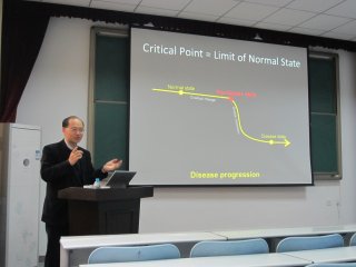 访问期间,陈洛南教授与相关领域师生举行了多次讨论会,就同行和师生们关心的学术问题进行了深入的交流和探讨,并在老校区计算机学院学术报告厅为我校师生作了题为“ Identifying critical transitions and their leading networks of complex diseases by dynamical network biomarkers ”的学术报告。他在报告中详细介绍了系统生物学重点实验室近年来的研究内容,重点介绍了团队目前的研究方向和所取得的研究成果,尤其是在设计动态网络标记物(DNB)检测人类疾病方面取得的突破,并与在座师生交流互动。 报告由研究生院副院长卢朝阳主持。