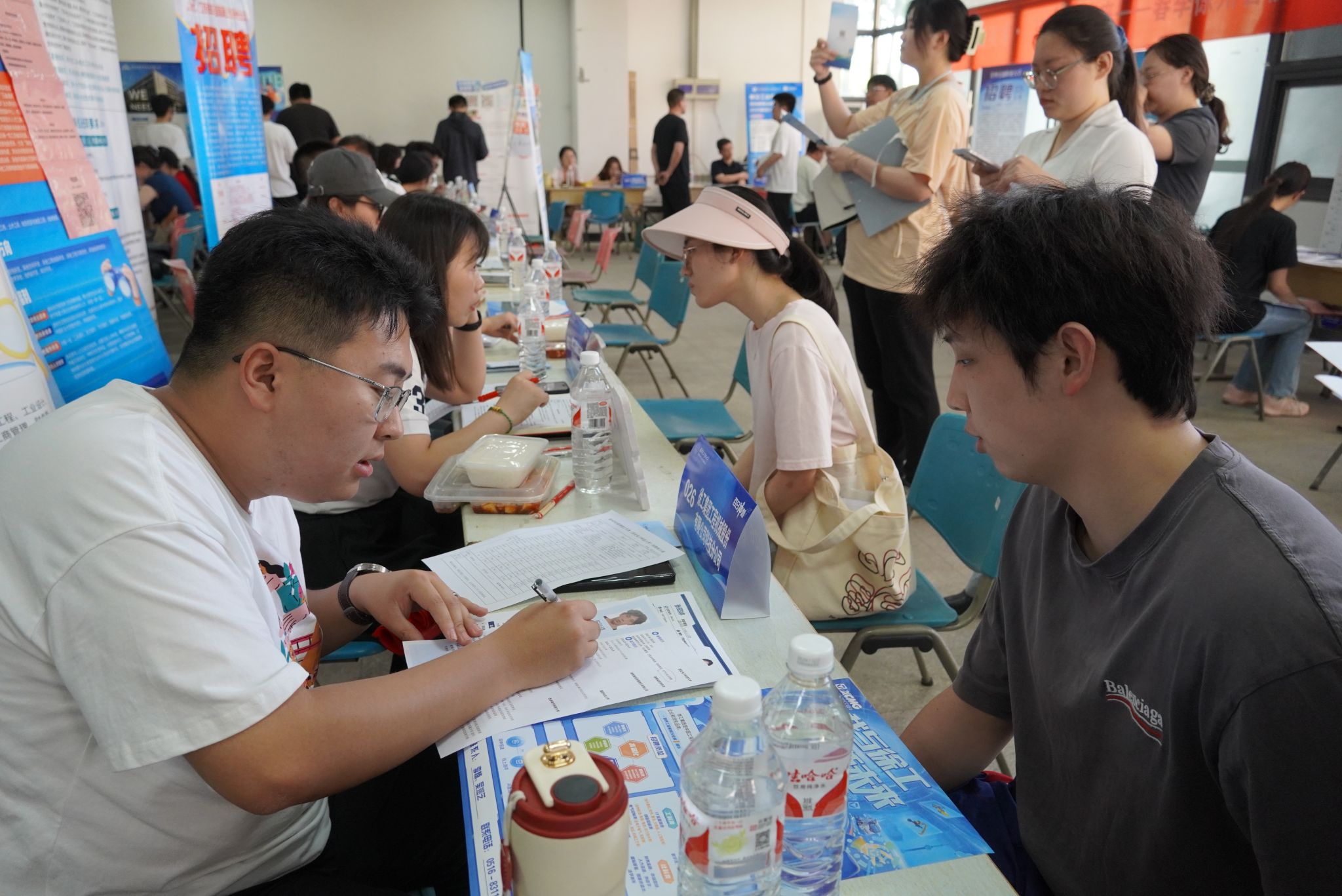 五月的西安骄阳似火,双选会现场气氛也异常热烈。毕业生们手持精心准备的简历穿梭于各展位间,积极了解用人单位的招聘需求并深入交流咨询。此外,本次双选会还吸引了不少低年级学生前来现场观摩,提前感受就业氛围、了解行业需求和就业形势,助力找准自身定位,做好生涯规划。