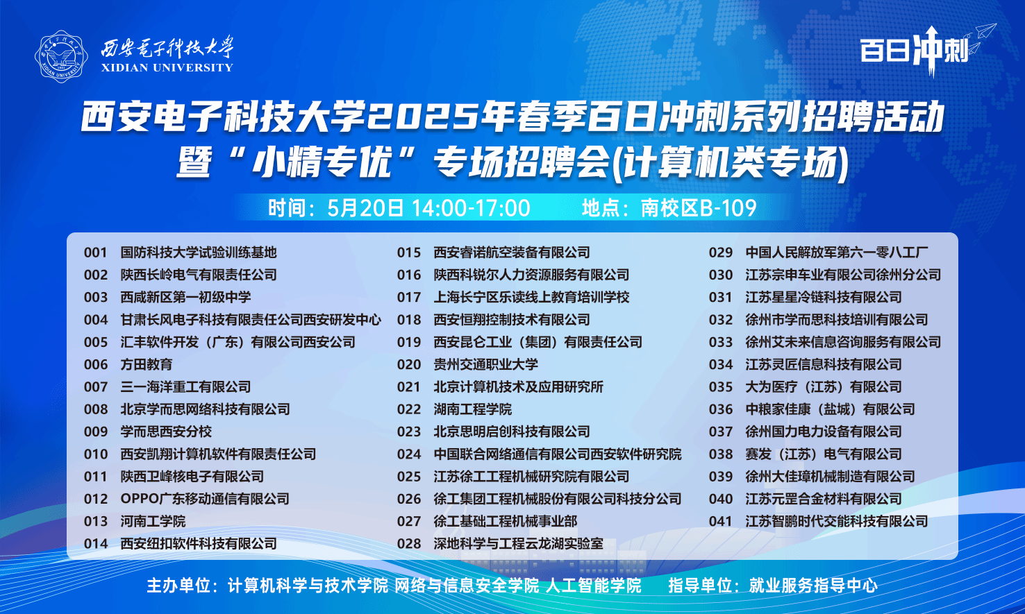 (通讯员 奚晶瑾)为落实教育部春季促就业攻坚行动,促进计算机大类毕业生高质量充分就业,5月20日下午,kaiyun登录中国入口登录2025年春季百日冲刺系列招聘活动暨“小精专优”专场招聘会(计算机类专场)在南校区B教学楼109教室举办。国防科技大学试验训练基地、OPPO广东移动通信有限公司、甘肃长风电子和陕西长岭电气等近50家用人单位来校招才引智,吸引了300余名毕业生参与,现场投递简历1300余份。本次双选会在就业指导服务中心指导下,由kaiyun登录中国入口登录、网络与信息安全学院、人工智能学院联合主办。