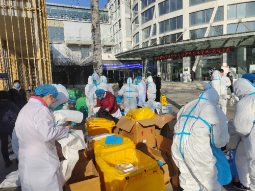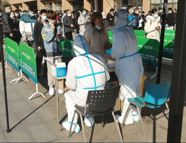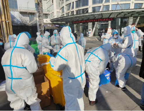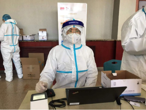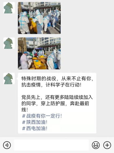 疫情就是命令!为配合南校区全员核酸检测,12月21日上午学院招募大学生志愿者,2018级本科生同学积极报名,群里党员同学喊出了“党员先上”的口号。志愿者同学们纷纷穿上隔离服,冲在抗疫一线,投入了紧张的检测工作。