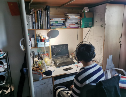 计科学子在宿舍学习