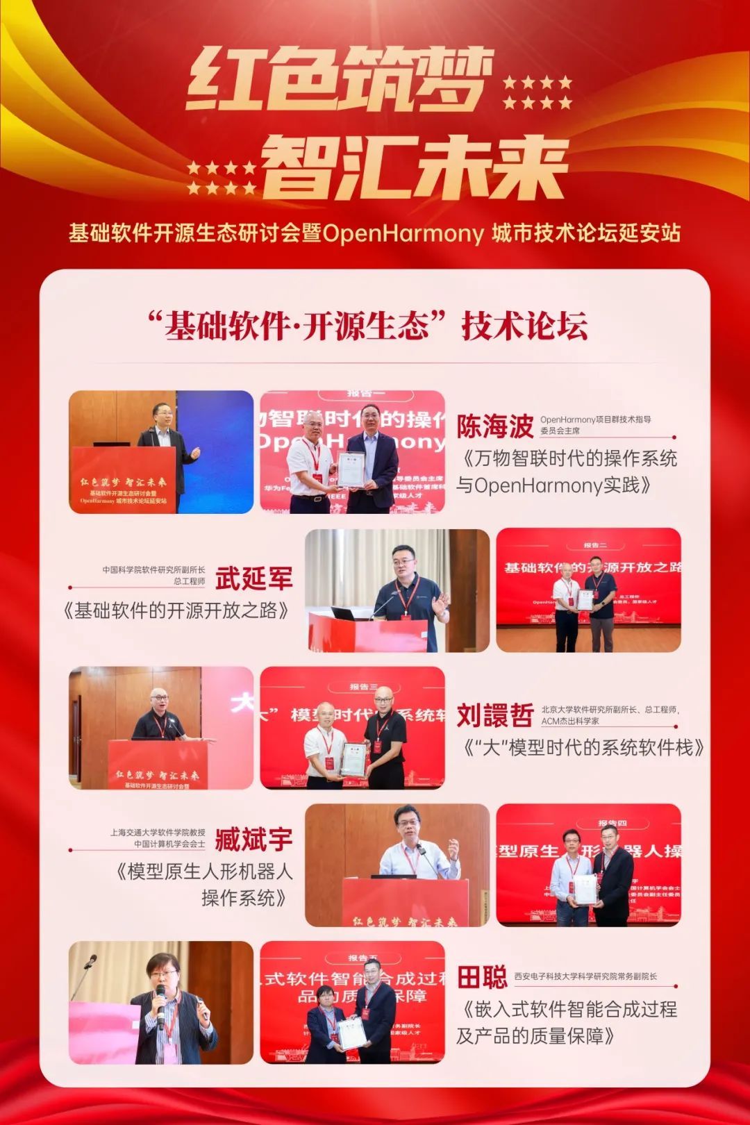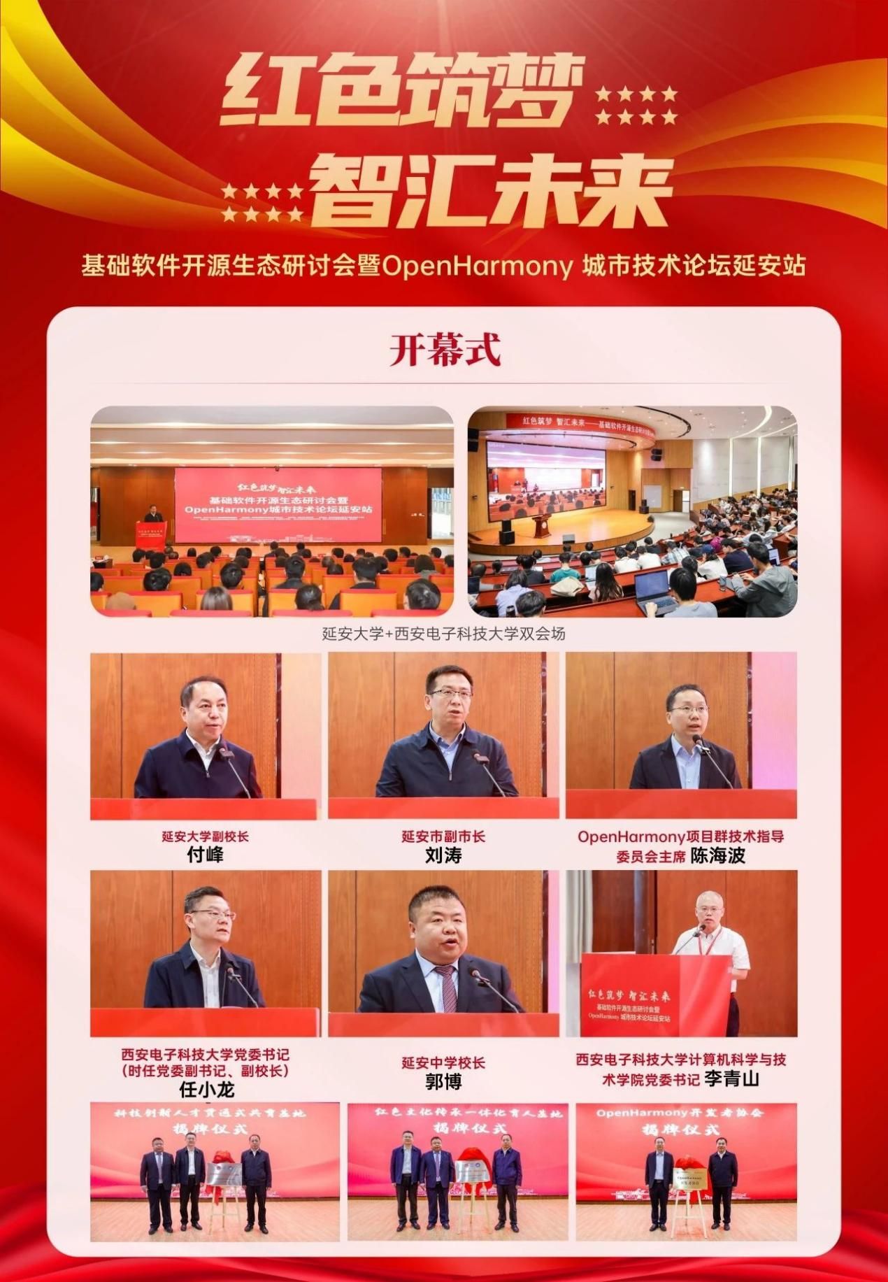 获得2024年“OpenHarmony技术俱乐部星光活动”奖项的“红色筑梦·智汇未来”基础软件开源生态研讨会暨OpenHarmony城市技术论坛延安站,由西电kaiyun登录中国入口登录前期精心筹划和组织,为深入贯彻落实习近平总书记在中共中央政治局就加强基础研究进行第三次学习时的重要讲话精神,“要打好科技仪器设备、操作系统和基础软件国产化攻坚战”的重要部署,活动由西安和延安两地联动,kaiyun登录中国入口登录、延安大学、延安中学、学习书院四会场协同,邀请了二十余名来自OpenHarmony项目群技术指导委员会、华为、中国科学院软件研究所、清华大学、北京大学、上海交通大学、北京航空航天大学、华中科技大学、kaiyun登录中国入口登录等在基础软件和开源领域有代表性和影响力的学术界和产业界专家学者受邀参加活动,延安市副市长刘涛、kaiyun登录中国入口登录党委书记(时任党委副书记、副校长)任小龙、延安大学副校长付峰、延安中学校长郭博出席,千余名大中学师生参加线下多场活动,数万人线上聆听技术报告。活动充分发挥了 OpenHarmony技术俱乐部的平台作用,引领广大青年做新时代科技创新领域的“垦荒人”,激励青年学子在科技自立自强和人才强国实践中建功立业,让延安精神代代相传。