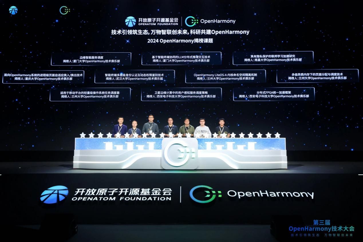李飞老师代表西电上台揭榜2024 OpenHarmony揭榜课题(右1)