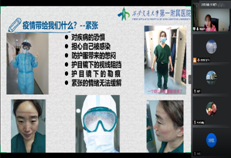 分享会引起了大家强烈共鸣,鱼亮老师表达了自己对郭护士的钦佩与感激之情,没有广大医护人员的全力奋战,就不会有大家的岁月静好;杜军朝老师咨询了疫情期间的防护注意事项,郭护士均做了详细解答。