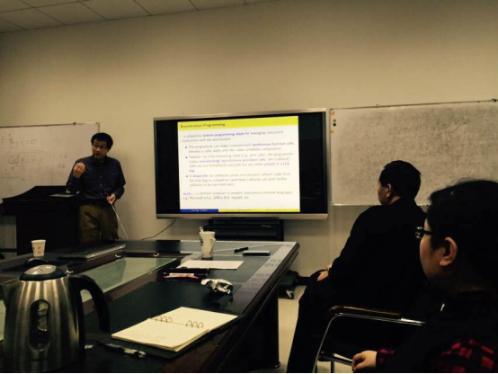 2016年12月2日上午,牛津大学计算机学院Luke Ong教授应邀来计算理论与技术研究所进行学术访问,在主楼4区203会议室作题为“Automatic verification of asynchronous concurrency and the shaped stack constraint”的学术报告。